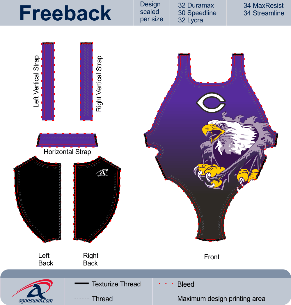 The Freeback thick strap suit features a slightly scooped neckline, full chest coverage, and comfortable straps across the shoulders and back, with full bottom coverage. (Note: the Freeback is identical to the Freeback 2.0, but is available in a different set of fabrics than the 2.0.)