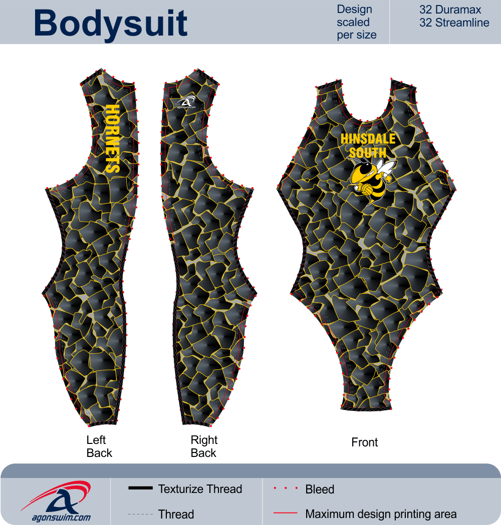 Our Reverse Zip bodysuit 2.0 was developed for water polo. It has a high neck and a reverse zipper (closure at bottom) to reduce the opportunity for the zipper to open during play.