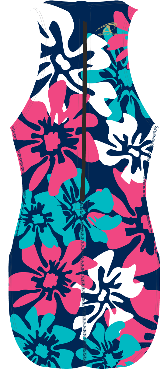 Our Bodysuit 2.0 has a high neck and a zipper back to provide full coverage. This style is particularly popular for water polo players.